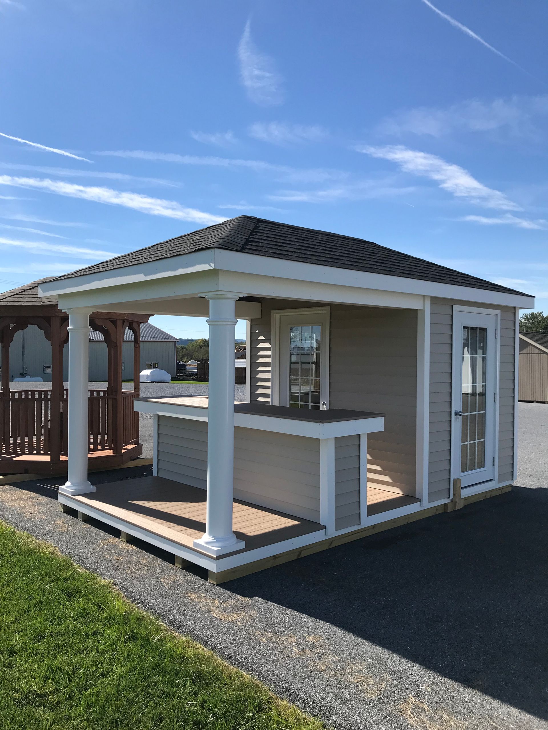 At The Shed Lot, we offer a wide variety of pool house styles, from intimate and elegant to spacious and decadent. Add a porch, customize your pool house with specialty windows and doors and choose from over 11 window shutter colors as well as a variety of roofing styles and colors.