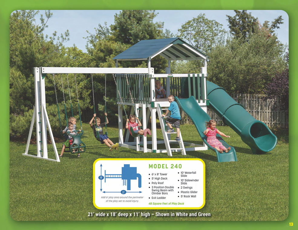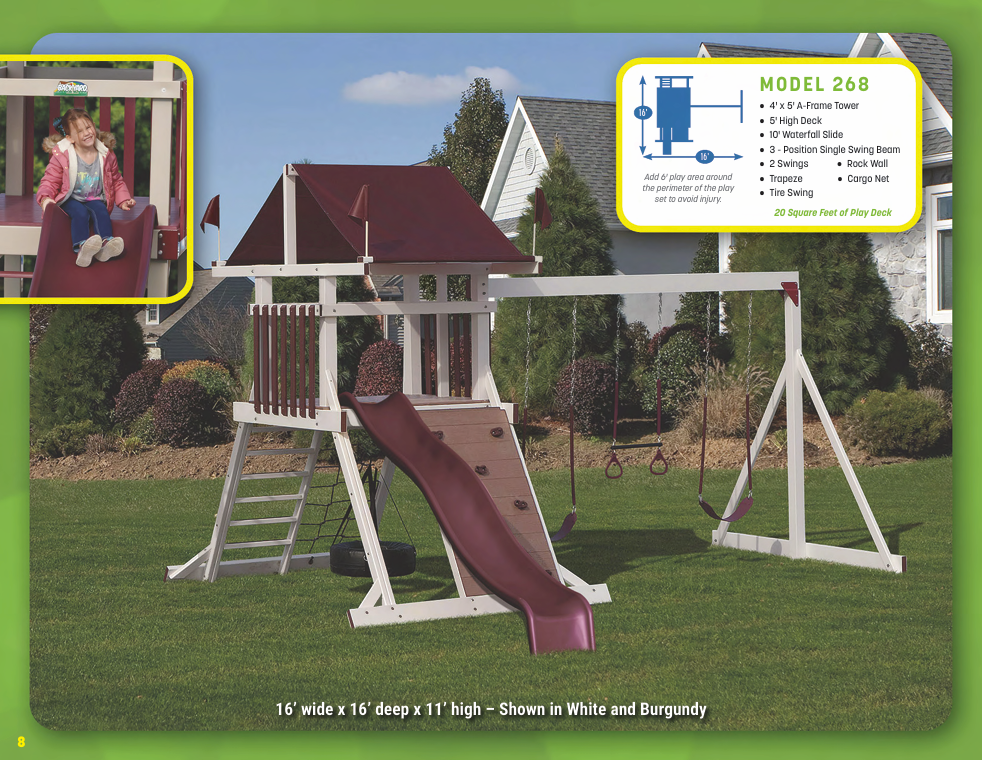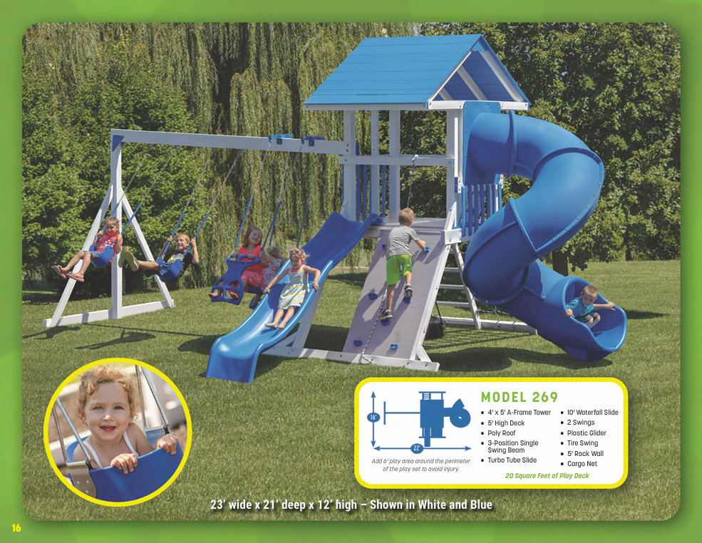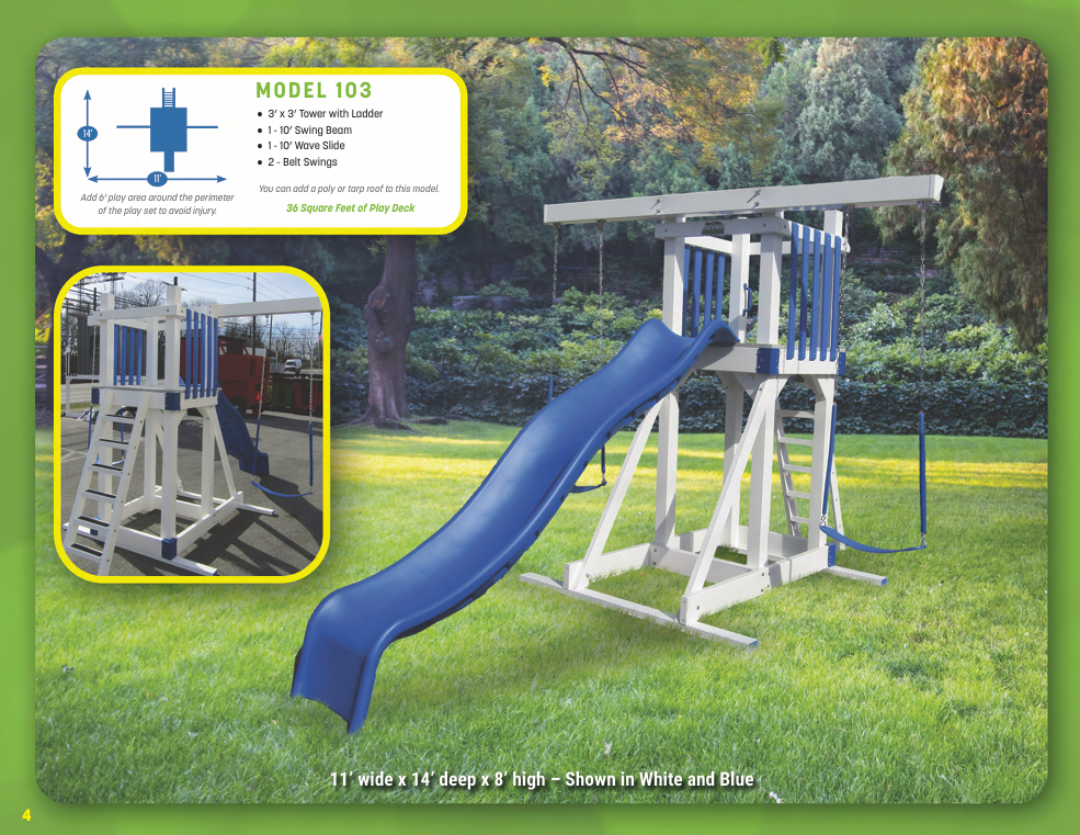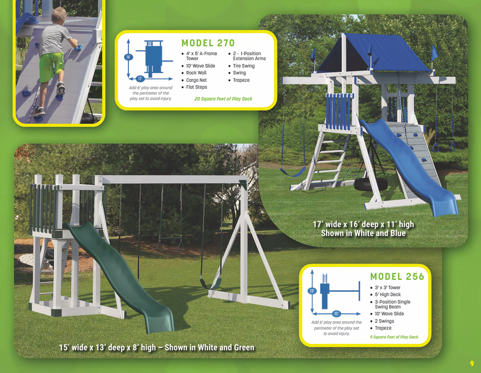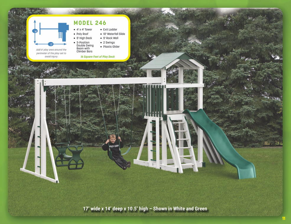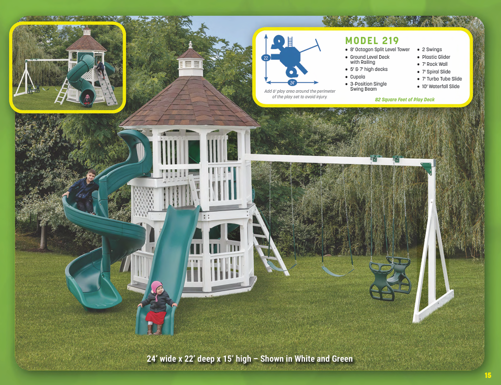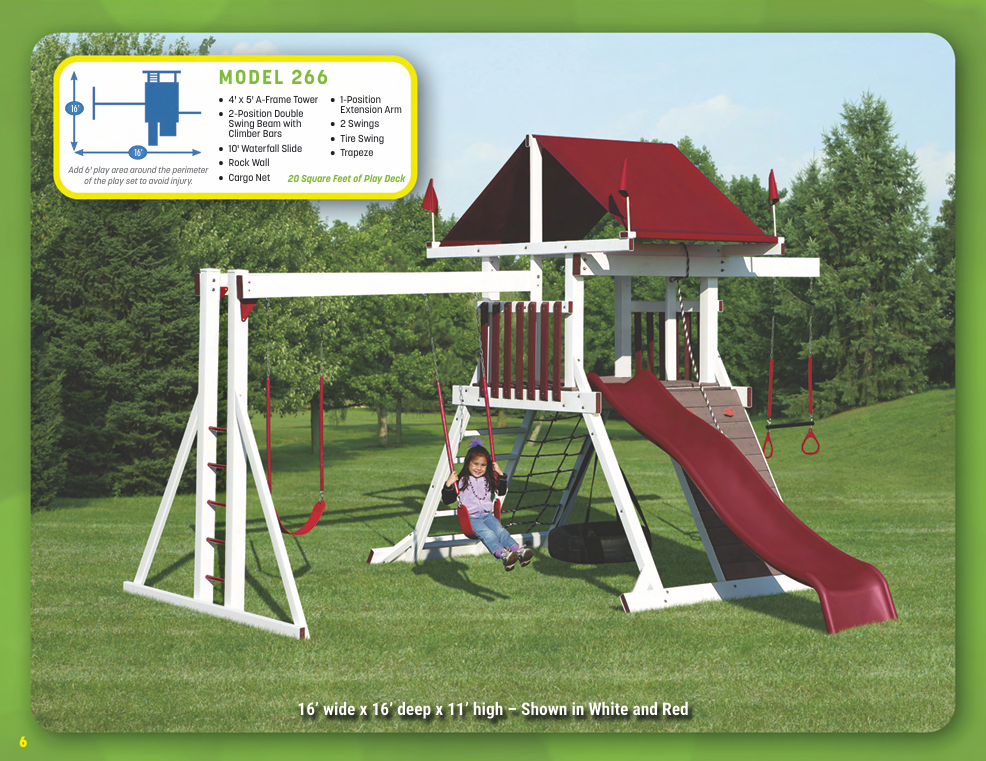 Looking for vinyl swing sets for maximum durability and no-maintenance designs? We have vinyl swing sets that grow as your family does. We have models for every budget!