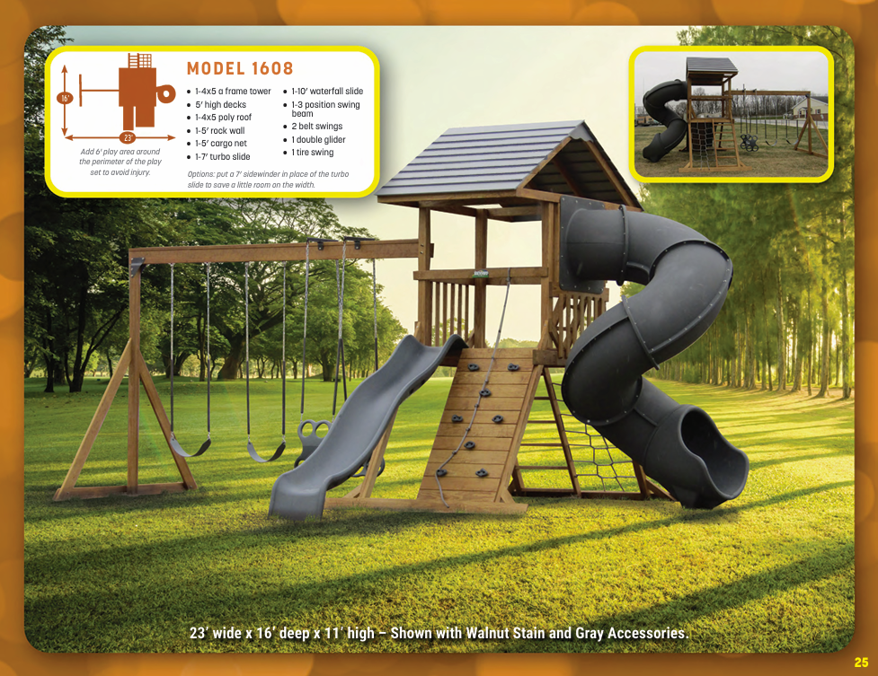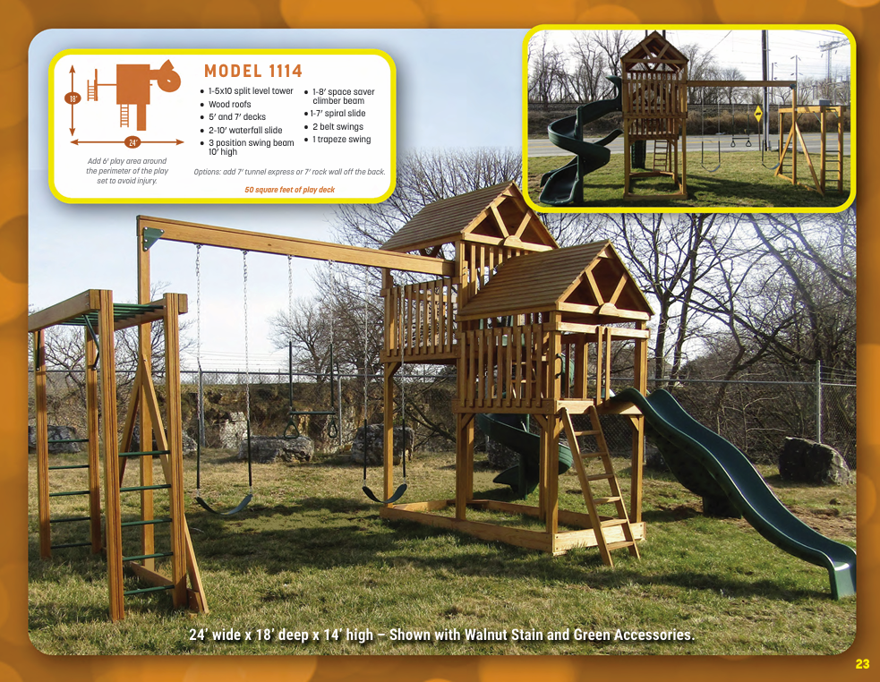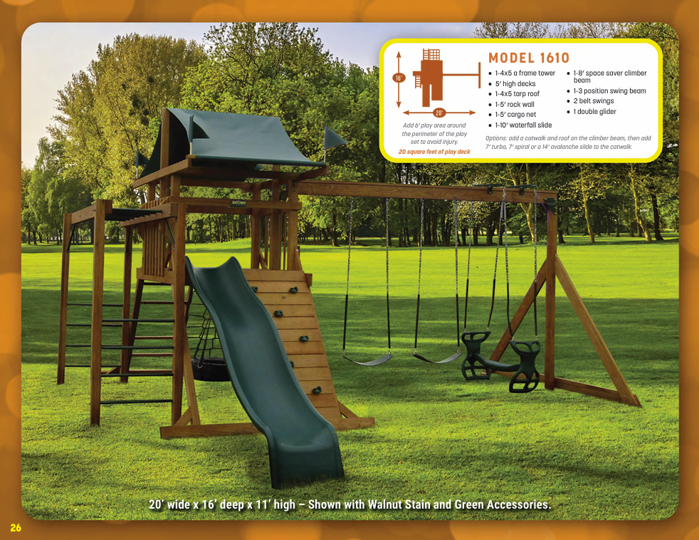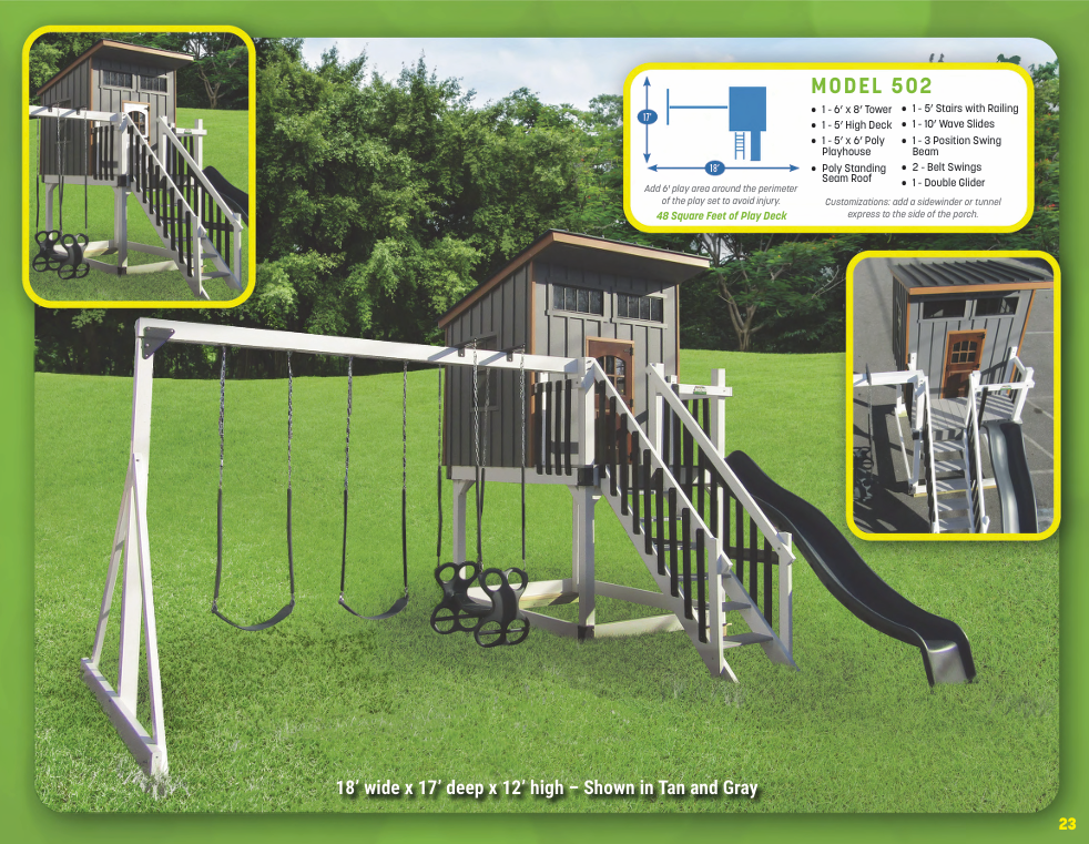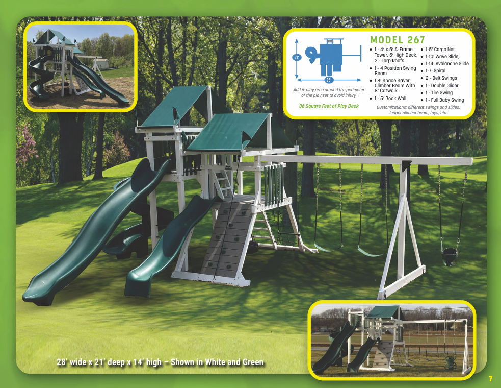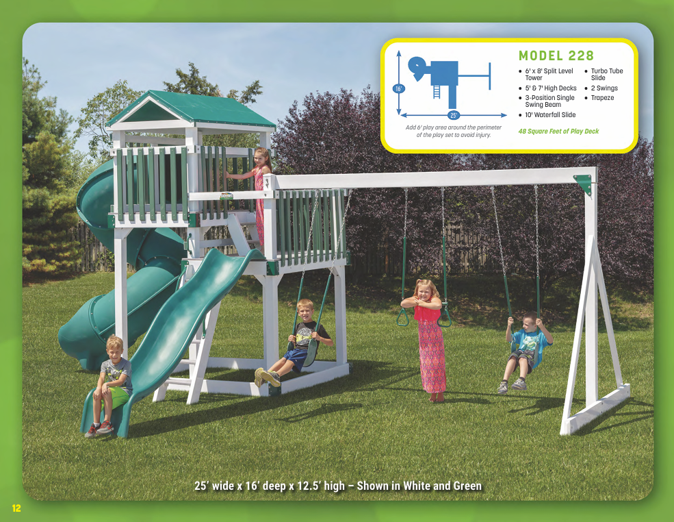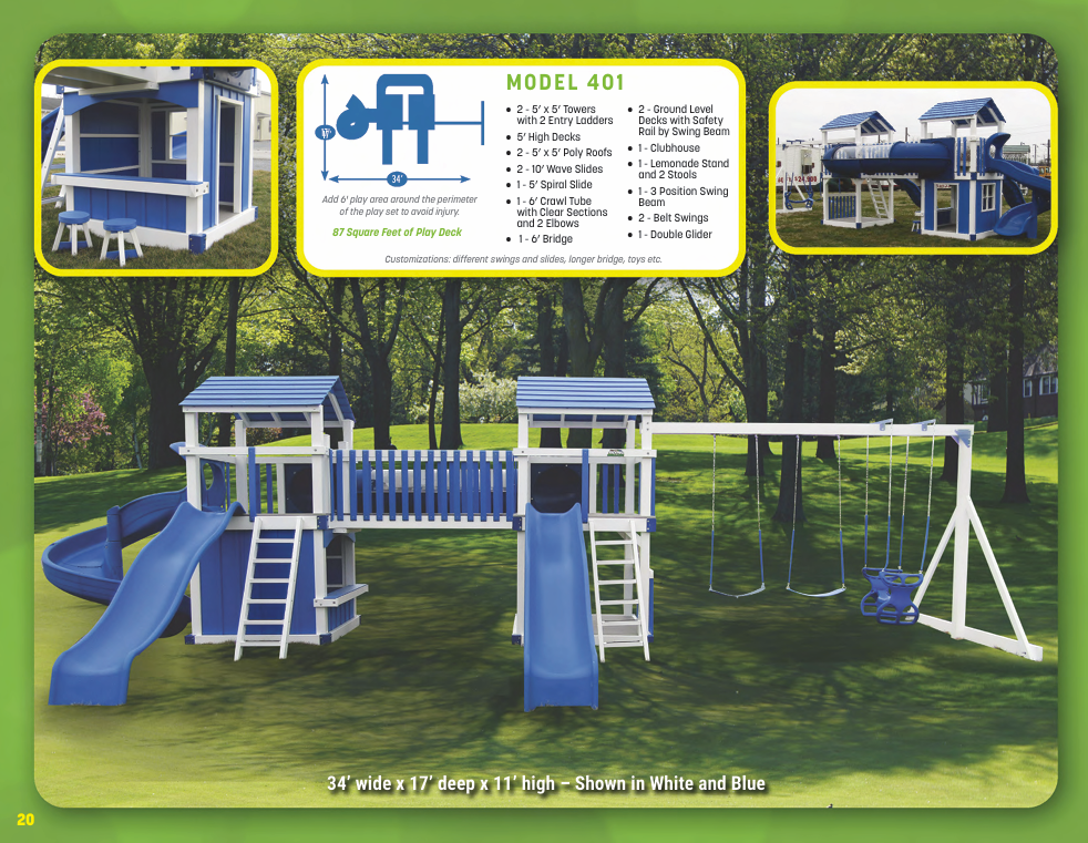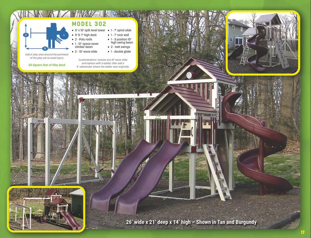 Looking for vinyl swing sets for maximum durability and no-maintenance designs? We have vinyl swing sets that grow as your family does. We have models for every budget!